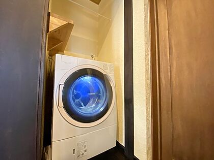 洗濯機置き場は引き戸があるので生活感を隠すことができます♪