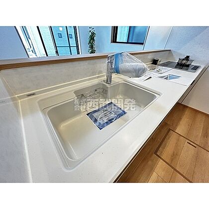 人造大理石のシンクタンクはお手入れもラクラク。見た目もおしゃれに、お片付けをするのがワクワクするキッチンです。