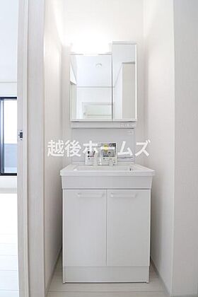 3面鏡のシャンプードレッサーは収納充実!朝のお支度も楽々できますね。