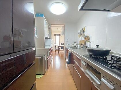 備え付けのカップボードやキッチン収納でキッチン周りすっきり!