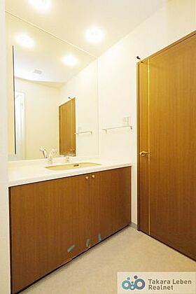 気持ちの良い朝はキレイな洗面所から♪鏡裏の独立洗面台は収納力豊富でモノが出がちな洗面所もスッキリ片付きます。