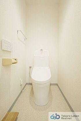 ウォシュレット機能付きのトイレは壁掛けリモコンの上位グレードを採用。便座がスッキリした印象となり、限られた空間を広く見せる効果があります。