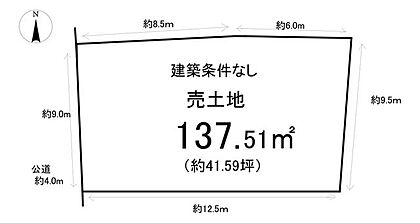 | 土地面積/坪(坪単価) | 137.51m2(登記簿)/41.67坪(37.90万円) | 代表的な接道 | 公道 西 4m ※詳細は備考欄をご確認ください |
