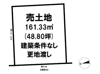 | 土地面積/坪(坪単価) | 161.33m2(登記簿)/48.89坪(32.30万円) | 代表的な接道 | 公道 西 4m ※詳細は備考欄をご確認ください |