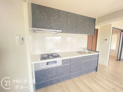 最新設備の揃ったキッチンです。3口コンロ付きのキッチンは、調理の効率が良く、同時に多くの料理を作れる便利で機能的な空間です