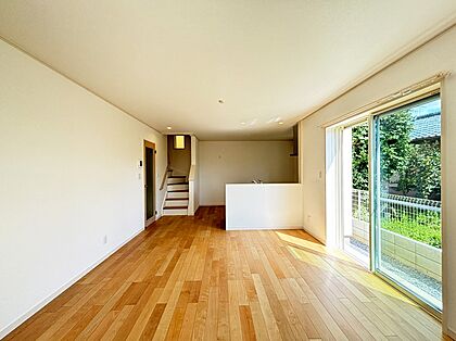内装「おはよう」「ただいま」家族とのコミュニケーションがとりやすいリビングイン階段があるリビングです。
