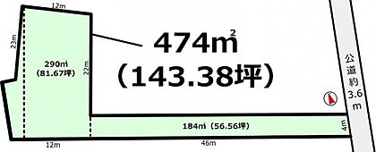 | 土地面積/坪(坪単価) | 474.00m2(登記簿)/143.64坪(4.90万円) | 代表的な接道 | 一方 公道 東 3.6m ※詳細は備考欄をご確認ください |
