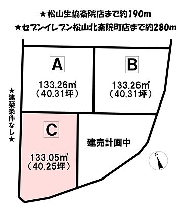 •  松山市北斎院町にある4区画分譲地のC号地になります♪