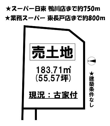 | その他 | ●建築条件なし ●所有権 ●平坦地 ●古家あり ●中学校 800m以内 ●子育てに便利な施設が充実 |