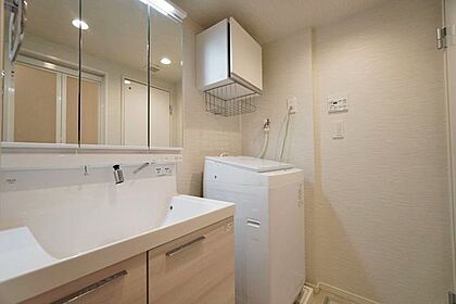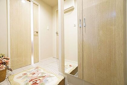 玄関に近い洗面室は、外出前の身だしなみチェックや、帰宅時の手洗いがしやすく使い勝手がいいですね。