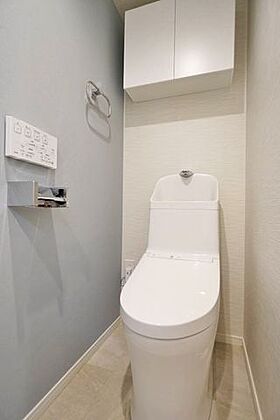 清潔感があり、お掃除がしやすいトイレです。必要最低限の収納スペースも付いています。