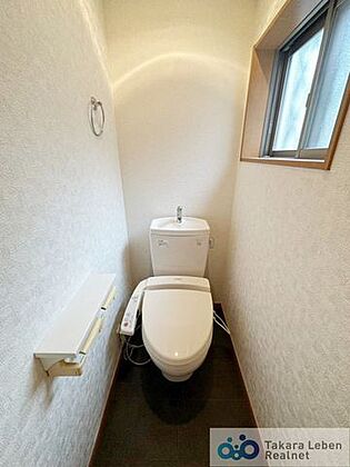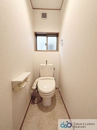 1階、温水洗浄トイレ。小窓があり、換気・採光良好です。