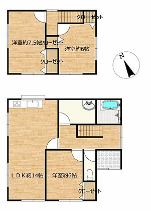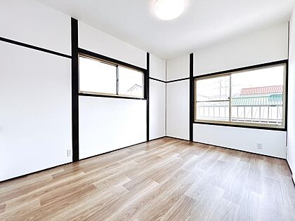 【リフォーム済】2階7.5帖の部屋にも2枚の窓があり、日が差し込んできます。朝日が差し込み、いい朝を迎えられそうですね。