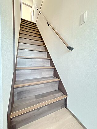 【リフォーム済】階段は手すりと滑り止めを新設しました。お子様や足の悪い方も安心してご利用いただけますね。
