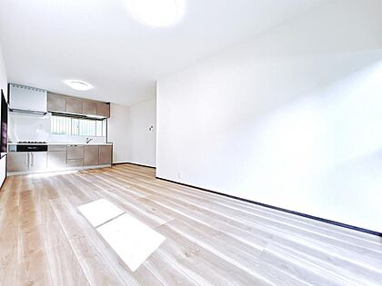 【リフォーム済】リビングの様子です。クロス張替え、フローリング重ね張り等行いました。