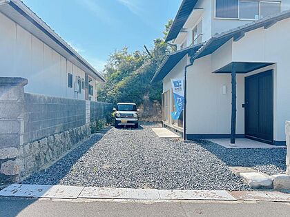 【リフォーム済】駐車場は縦列2台駐車ができるように拡幅工事を行いました。駐車場には砕石を敷きましたので防犯の面でも安心ですね。