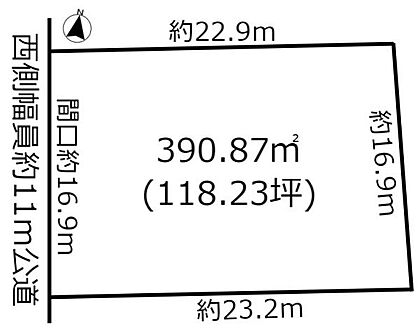 | 土地面積/坪(坪単価) | 390.87m2(登記簿)/118.45坪(56.60万円) | 代表的な接道 | 一方 公道 西 11m ※詳細は備考欄をご確認ください |