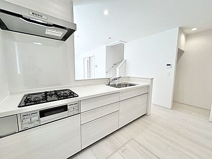 ■□■キッチン■□■人気の対面キッチンでご家族との会話を楽しみながらお料理ができます♪三口ガスコンロで火力がわかりやすく調理のしやすさ◎停電時も安心です♪