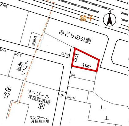 | 土地面積/坪(坪単価) | 158.80m2(登記簿)/48.12坪(9.10万円) | 代表的な接道 | 一方 私道 西 4.5m ※詳細は備考欄をご確認ください |