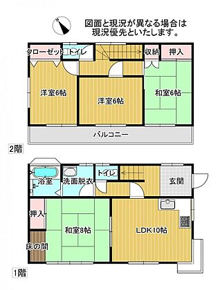 【間取図】4LDK、2階にトイレ付きの住宅です。浴室、洗面台新品交換、クロス張替、外壁屋根塗装などリフォームを行いました。