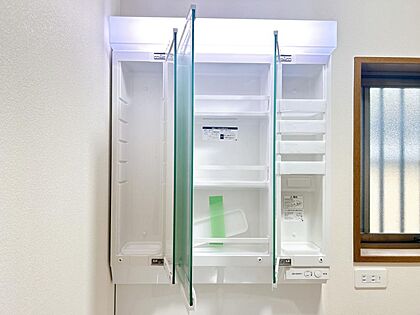【リフォーム中9/18】洗面台の鏡面部分は収納になっております。歯ブラシや髭剃りなどを隠して収納することですっきり清潔に保てます。