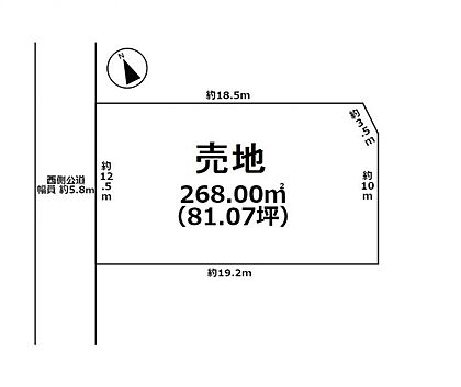 | 土地面積/坪(坪単価) | 268.00m2(登記簿)/81.21坪(24.60万円) | 代表的な接道 | 一方 公道 西 5.8m ※詳細は備考欄をご確認ください |