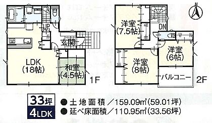 | 建物面積 | 100.95m2 | 土地面積 | 159.09m2(登記簿) |