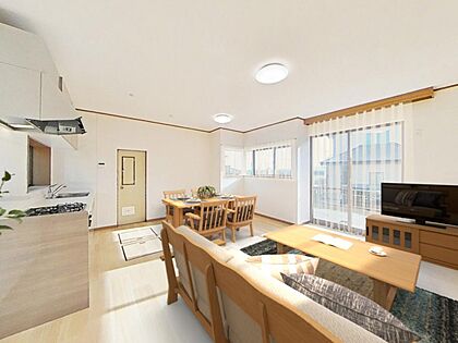 【リフォーム完成】リビングの別角度からのお写真です。南側に窓があり、日当たり良好で約14.65帖あるのでゆったりお使いいただけます。