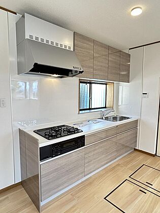 【リフォーム完成】キッチンは幅約255cmと広々した新品に交換いたしました。お子様と一緒にお菓子作りもできる広さがあっていいですね。