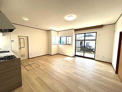 【リフォーム完成】約14.65帖のリビングの別角度からのお写真です。広々としているのでソファ等を置いていただいてもいいですね。