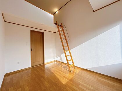 【エアコン設置予定】【リフォーム完成】2階の約6帖洋室のお写真です。ロフトがあるお部屋になります。壁天井はクロス張替をし、扉はクリーニングしております。照明は新品に交換いたしました。ロフトは寝室や収納