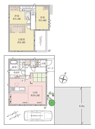 街区内道路南側は駐車場で開放感があり、陽当たり良好です。