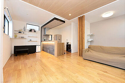 天井高さ最大2.7mの開放感のある19帖以上のLDK。天気の良い日は電気をつけなくても過ごせます。