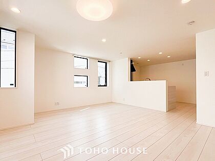 明るく開放的な空間が広がるLDK。室内には豊かな陽光が注ぎ込み、爽やかな住空間を演出。