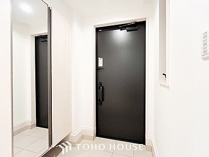 明るくコントラストのある、開放感と清潔感を兼ね備えた玄関。