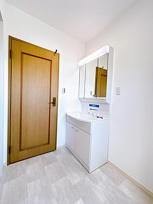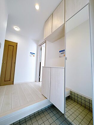 【リフォーム完成】シューズボックスは新品交換いたしました。鏡付きですので出発前に身だしなみチェックができますね。