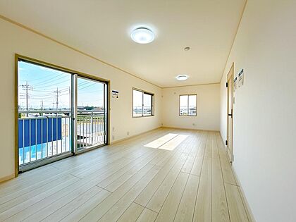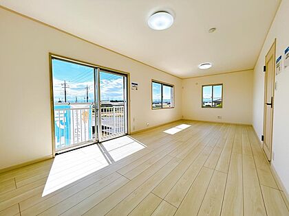 【リフォーム完成】2階約9帖の洋室です。床はフローリング張り替え、壁天井はクロスを張り替えいたしました。南側の掃き出し窓を含む、3面採光で明るい空間です。