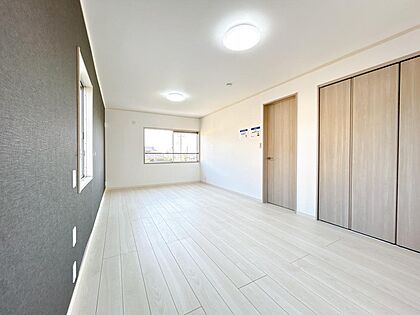 【リフォーム済】10.5帖洋室別角度のお写真です。白を基調とした清潔感のある空間です。