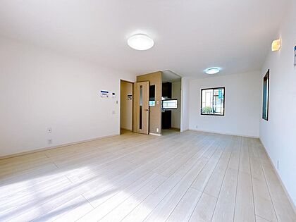 【リフォーム完成】13.75帖のリビングは小窓がありますので、キッチンからご家族の様子を見ながら料理することができます。