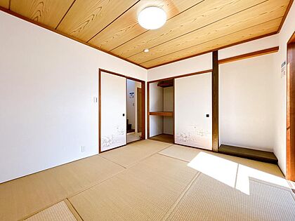 【エアコン一台設置予定】1階約6帖の和室は畳の表替え、障子襖は張り替えをいたしました。押し入れ付きで収納に困りませんね。