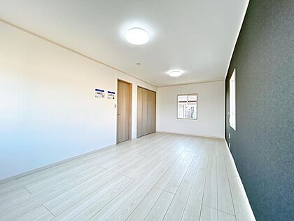 【リフォーム完成】2階約9帖の洋室別角度のお写真です。クローゼット収納がございますのでお部屋をすっきりと保てます。