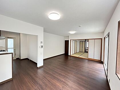 【リフォーム済】リビングダイニングキッチンは天井・壁クロス張替えて明るいリビングになりました。照明も新品に交換済です。