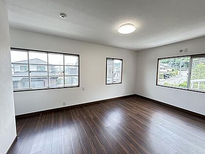 【リフォーム済】2階約8帖洋室を南西側より撮影しました。一部壁で仕切られた部屋ですが、使い方色々出来ますよ。床・天井・壁クロス張替え済です。