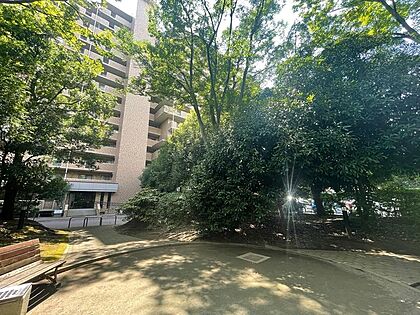 エントランスを出ると目の前は緑豊かな休憩スペースもあります。