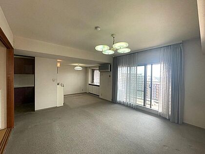 角部屋ならでは、3か所の窓から明るい陽射しが入る広々とした20.2帖のリビングです。
