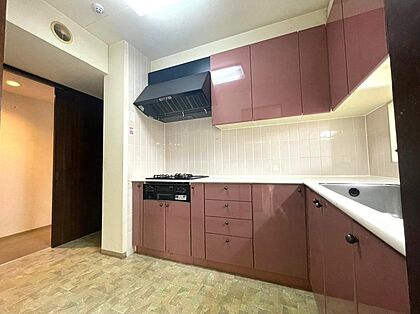 作業スペースを広くとれるL型キッチン。収納スペースも十分にあります。