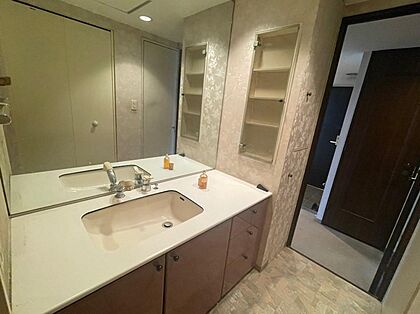 大型の洗面台です。洗濯機置き場もドア付きなの生活感を感じさせない造りです。