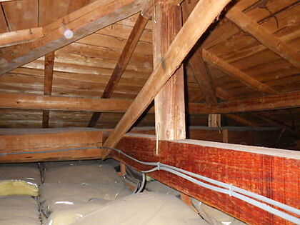 屋根裏に雨漏れ跡や木材の腐食等が無いか確認しております