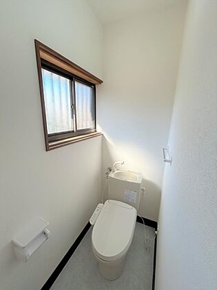 【リフォーム完成】トイレは新品の簡易水洗トイレに交換しました。ウォシュレット付きのものになりますので、冬場は特に助かりますね。