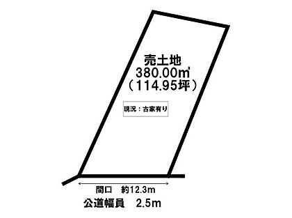 | 土地面積/坪(坪単価) | 380.00m2(登記簿)/115.15坪(17.40万円) | 代表的な接道 | 公道 北 2.5m ※詳細は備考欄をご確認ください |